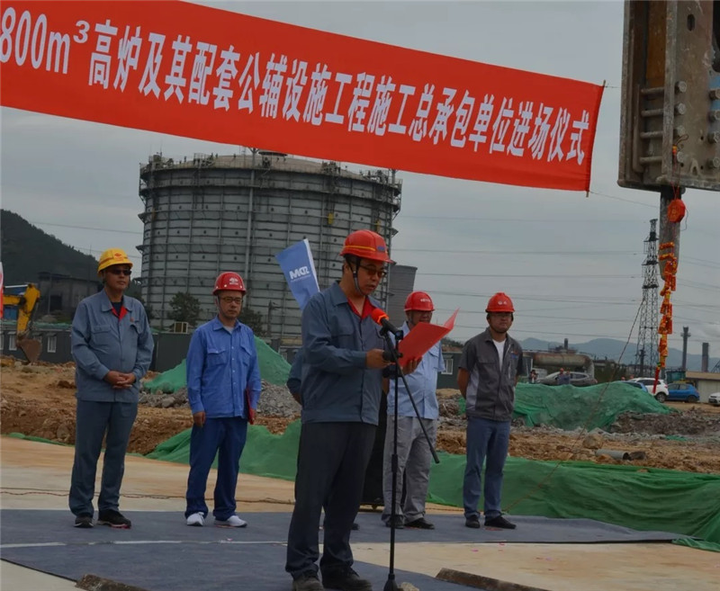 山冶設計黨委書記谷卓奇、萊蕪三控冶金建設監理事務所經理沈桂聯、中國二十冶集團有限公司高爐項目部項目經理任茂盛分別代表總承包單位、施工監理、施工單位致辭,最后山鋼股份萊蕪分公司煉鐵廠黨委書記、高爐項目部經理孫建設宣布:“山鋼股份萊蕪分公司新舊動能轉換項目新建2×3800立方米高爐及其配套公輔設施工程施工總承包單位進場!”