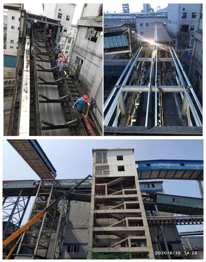 至新區(qū)7、8號(hào)焦?fàn)t輸煤生產(chǎn)線是焦化筒倉一期一步工程施工難度最大的一條生產(chǎn)線,新建3個(gè)轉(zhuǎn)運(yùn)站、2條皮帶通廊、改造1條皮帶通廊,全長(zhǎng)400多米。皮帶通廊即有半地下鋼筋混凝土結(jié)構(gòu)也有架空鋼結(jié)構(gòu),架空部分緊靠鐵路及高落差護(hù)坡,與生產(chǎn)嚴(yán)重交叉,組織施工及吊裝難度極大。項(xiàng)目部各專業(yè)人員積極配合,協(xié)調(diào)各施工單位,分段作業(yè),由于組織得力,各專業(yè)銜接緊密、配合緊張有序,土建積極給鋼結(jié)構(gòu)、鋼結(jié)構(gòu)積極為機(jī)裝、機(jī)裝積極為電裝及后工序創(chuàng)造條件,特別是最后三天,鋼結(jié)構(gòu)收尾、支架及皮帶安裝、單機(jī)調(diào)試、設(shè)備運(yùn)行調(diào)整、舊皮帶通廊改造、新舊系統(tǒng)聯(lián)動(dòng)控制調(diào)試、照明報(bào)警及語音系統(tǒng)安裝調(diào)試,時(shí)間緊任務(wù)重施工難責(zé)任大,現(xiàn)場(chǎng)各類施工人員多,項(xiàng)目部人員靠現(xiàn)場(chǎng),緊抓安全,積極協(xié)調(diào),最終克服了各種困難,最終超額提前圓滿完成任務(wù)。